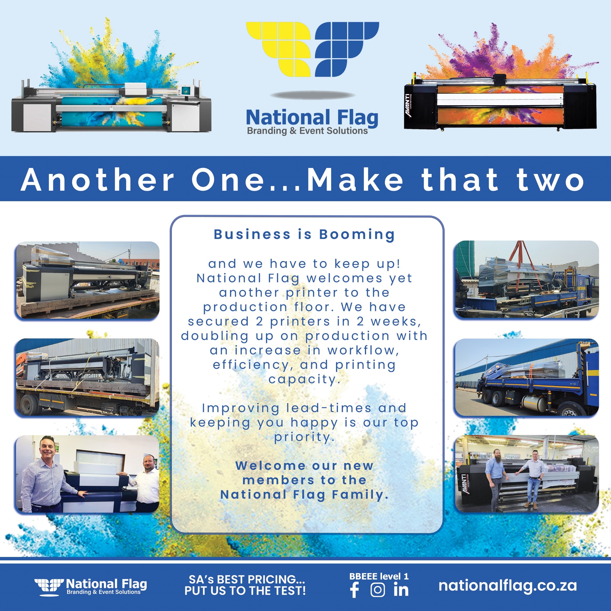 Business is booming and we have to keep up! ๐Ÿ”ฅ National Flag welcomes yet another printer to our production floor. We have secured 2 printers in 2 weeks, doubling up on production with an increase in workflow, efficiency, and printing capacity ๐Ÿ’ช Improving lead-times and keeping you happy is our top priority. Welcome our new members to the National Flag Family ๐Ÿ‡ฟ๐Ÿ‡ฆ