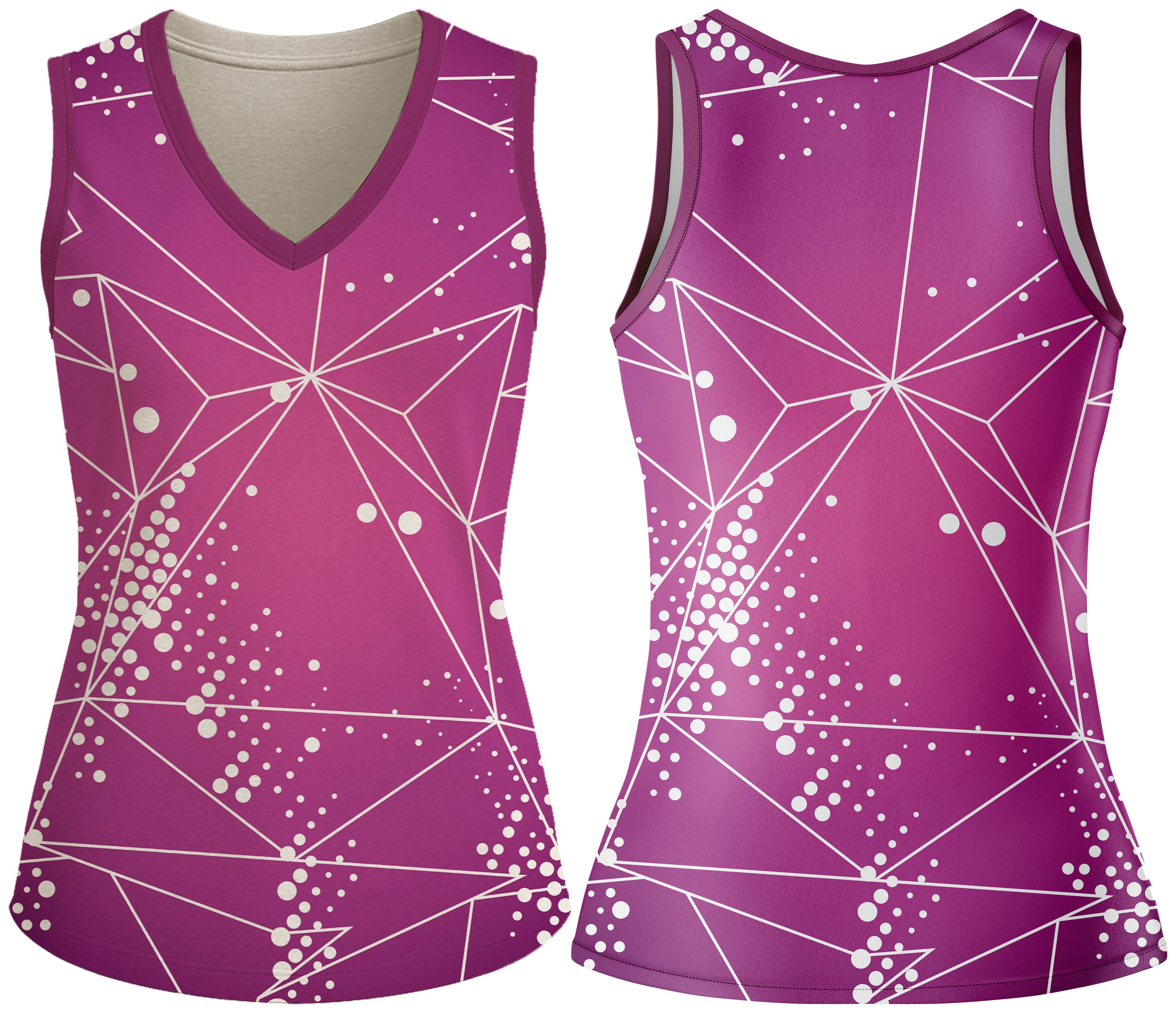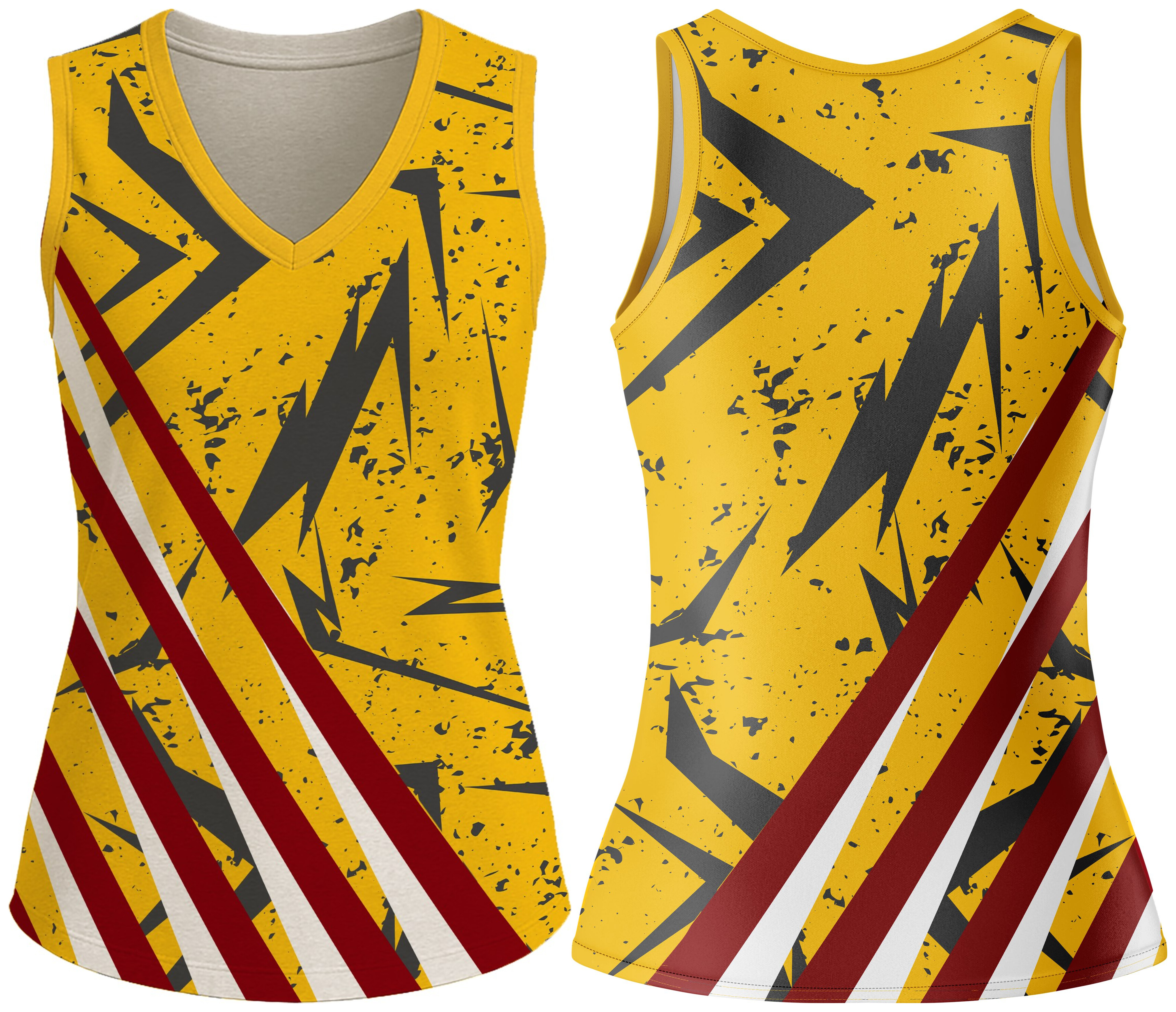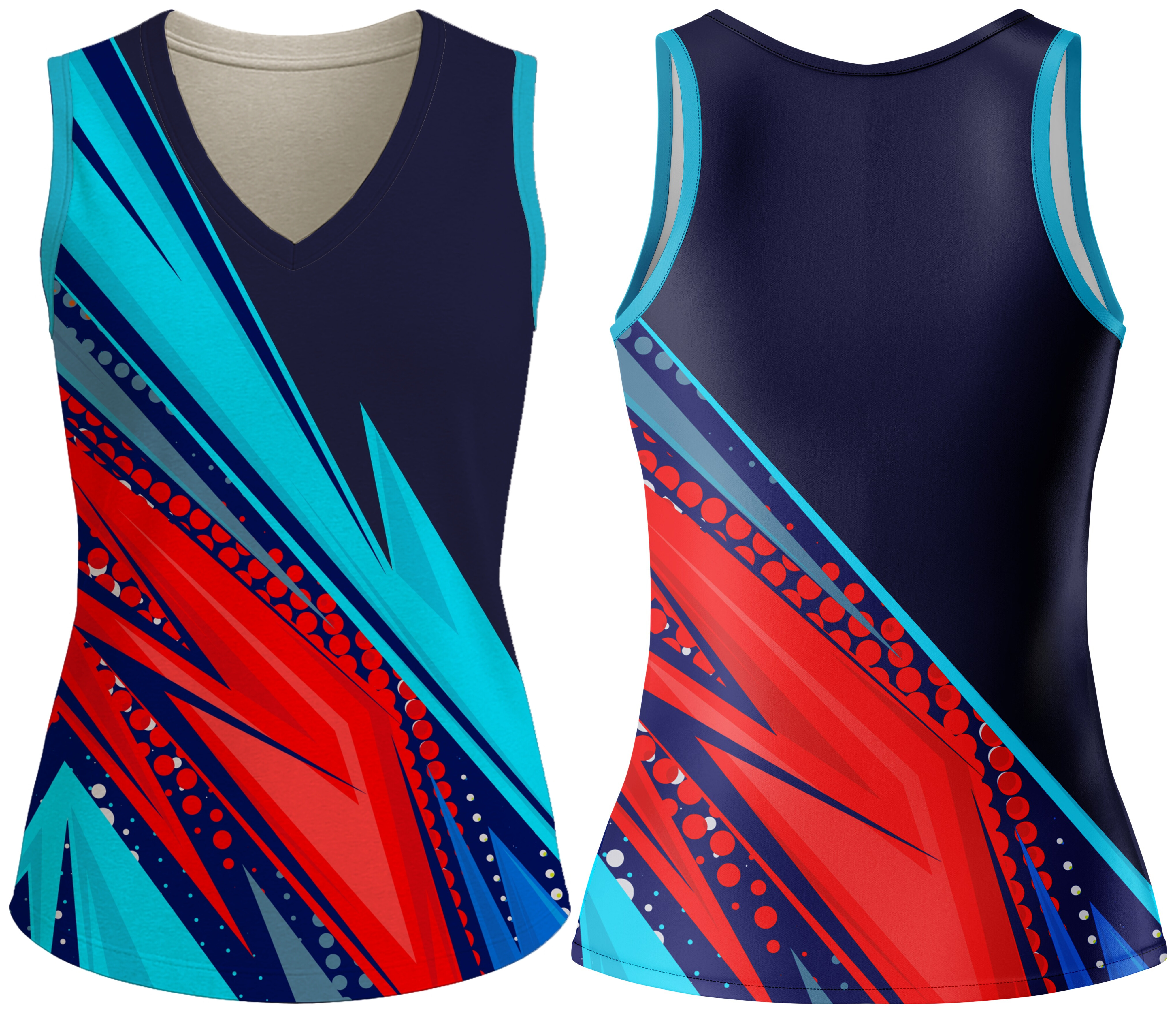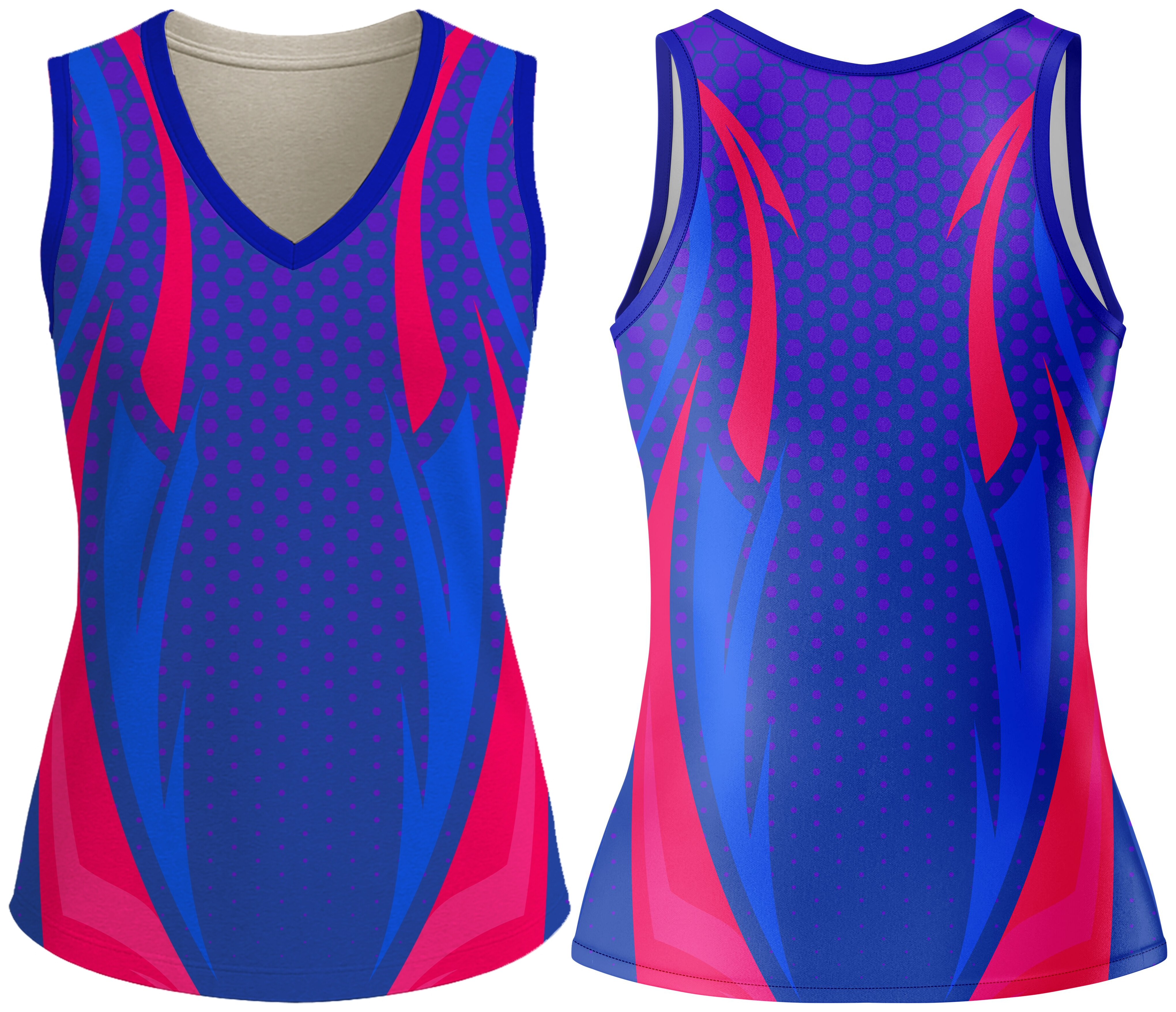 Dominate the court with this Ladies V-Neck Vest. Crafted from 145gsm Birdseye and 145gsm Sport Tec fabric, it features a Cross-Over V-Neck on the front, and binding on the armholes for a secure, comfortable fit. The double top-stitched hemline ensures lasting durability. Dye-sublimated for bold, long-lasting colours — perfect for hockey and netball players who demand comfort, agility, and style.