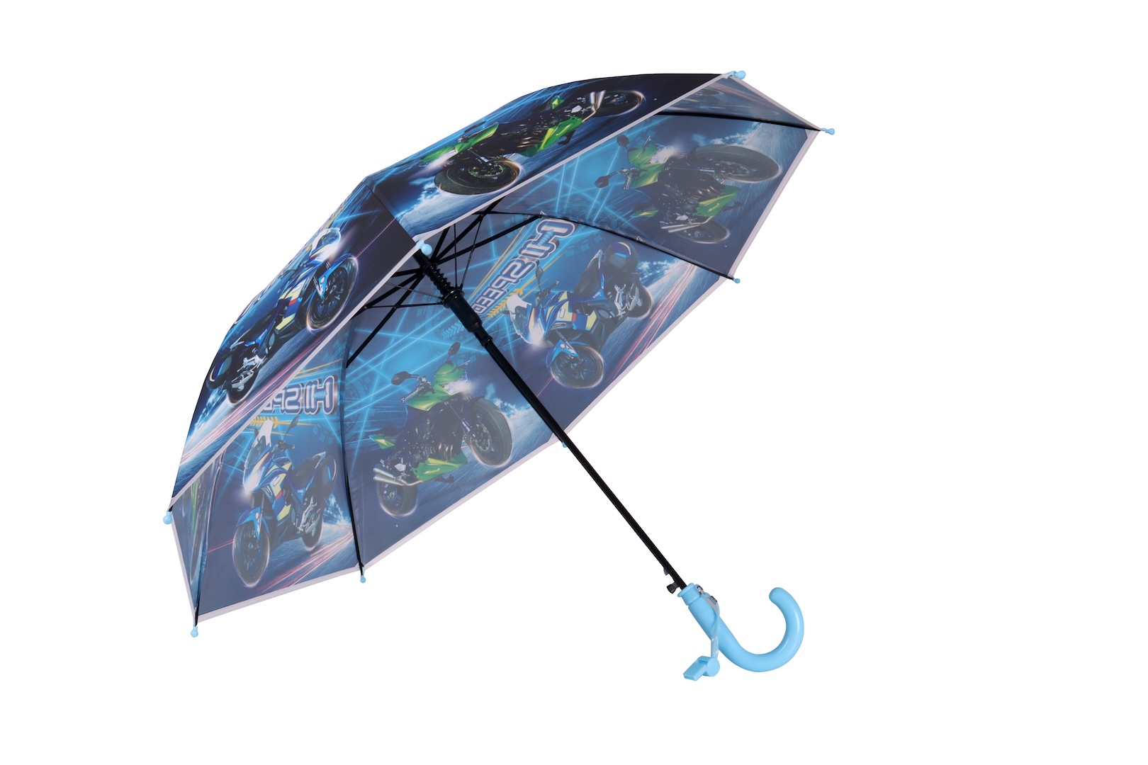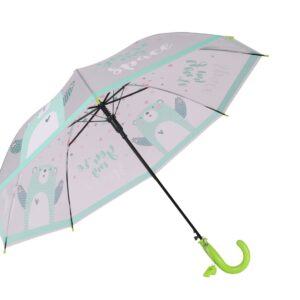 Sheffield Kiddies Hook Handle Umbrella with 98cm diameter and 8-panel canopy is designed for children’s everyday use. Made from durable POE printed plastic with an auto-open metal frame and plastic hook handle, it’s lightweight, safe, and easy for kids to carry.