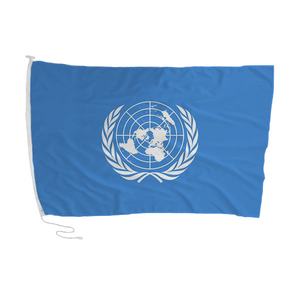 UNITED NATIONS FLAG 90 X 60cm, Screen Printed onto SABS approved Bunting Material, Complete with Rope & Toggle.