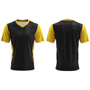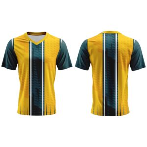 Step onto the field with confidence in the V-Neck Short Sleeve Soccer Shirt, built for speed and total freedom of movement. Designed with fitted short sleeves for a sharp athletic look, a breathable V-neck neckline for airflow. Finished with double top-stitching on the hem and sleeves for added durability and crafted from lightweight 160gsm Sports Sheen fabric. Dye-sublimated for bold, long-lasting colour that won’t fade match after match.
